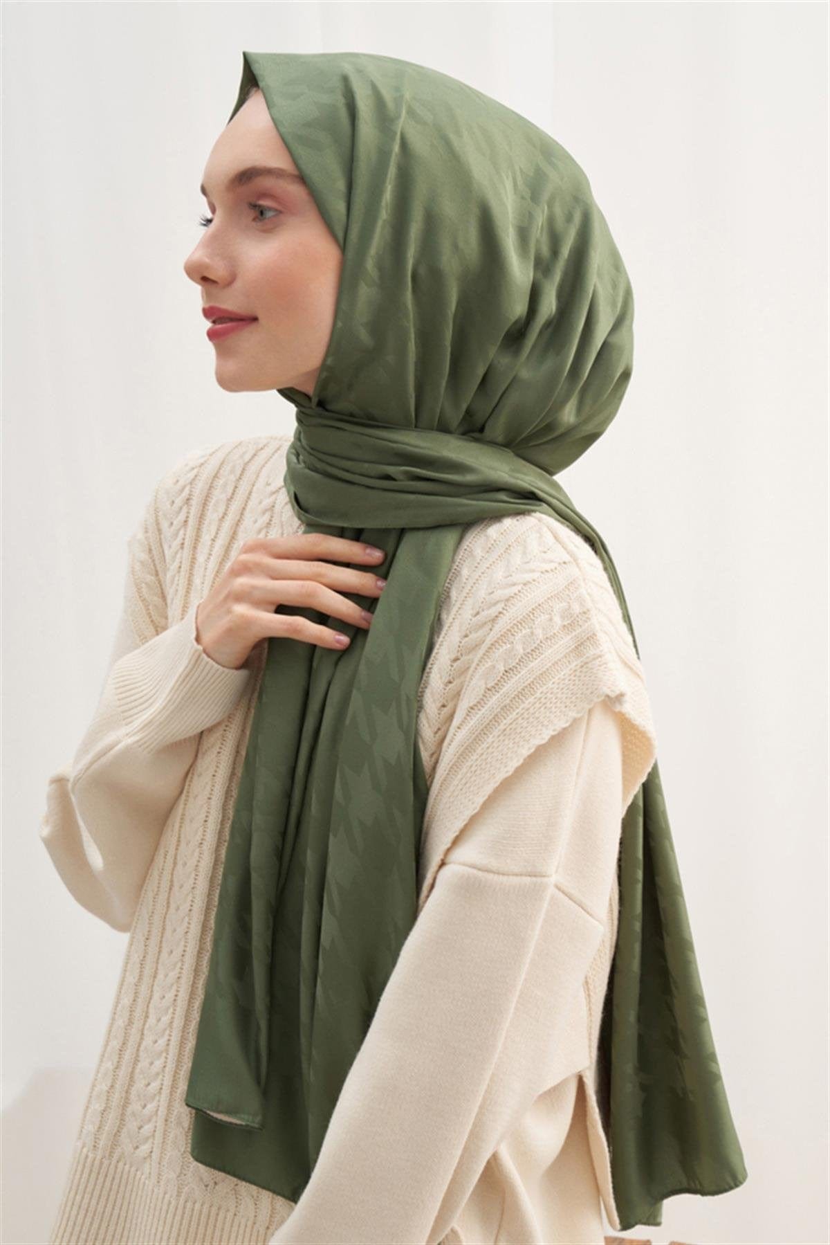 Houndstooth Pattern Cotton Silk Scarf Evergreen