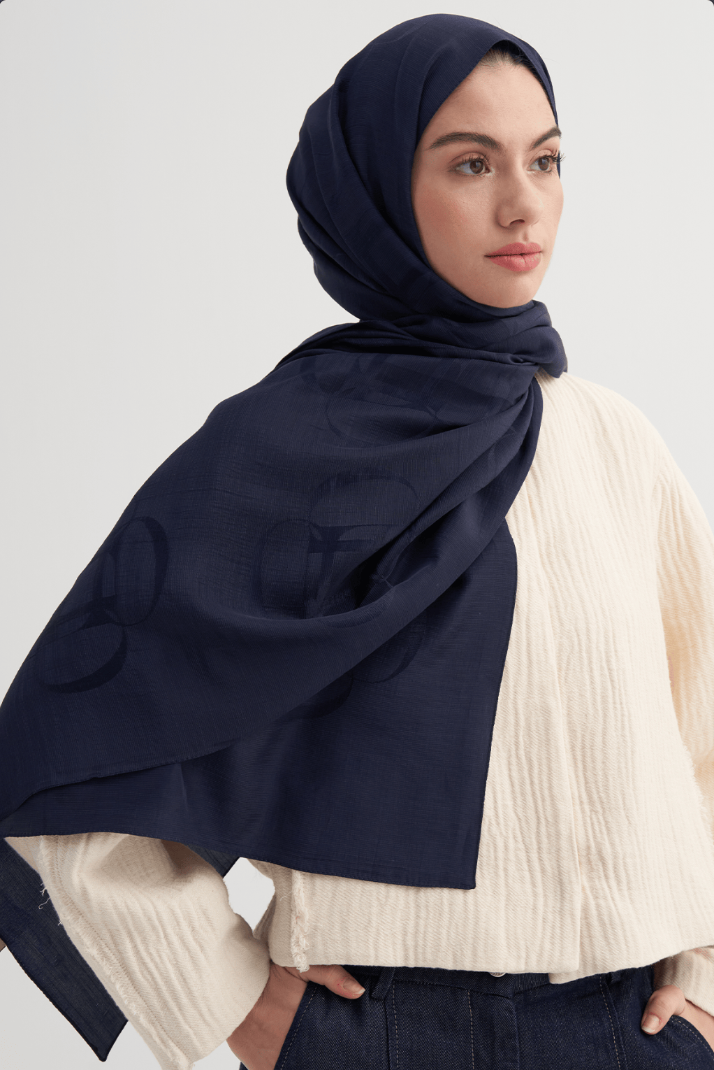 Aura Pattern Rina Viscose Scarf Navy Blue
