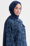 Monogram Pattern Liora Cotton Scarf Deep Blue