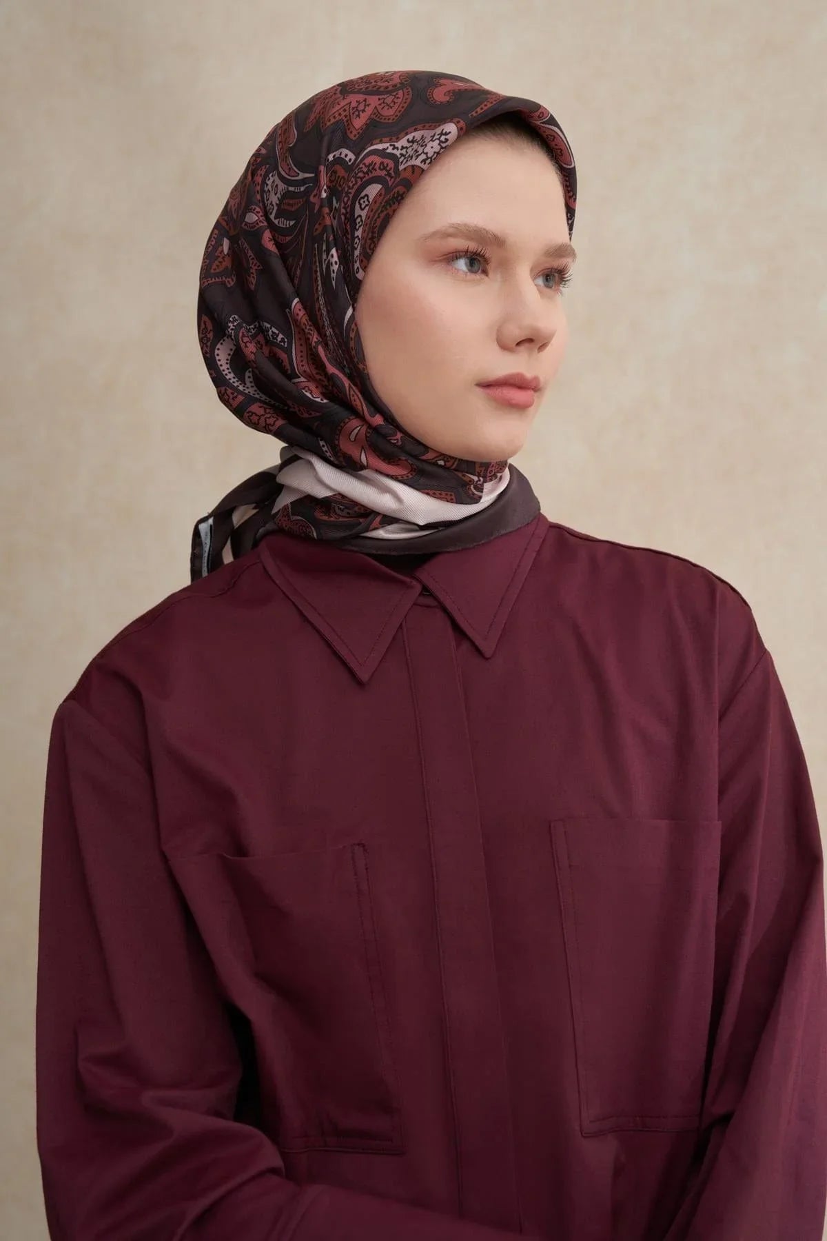 Etnic Brurgundy Mulbary Silk Square Scarf