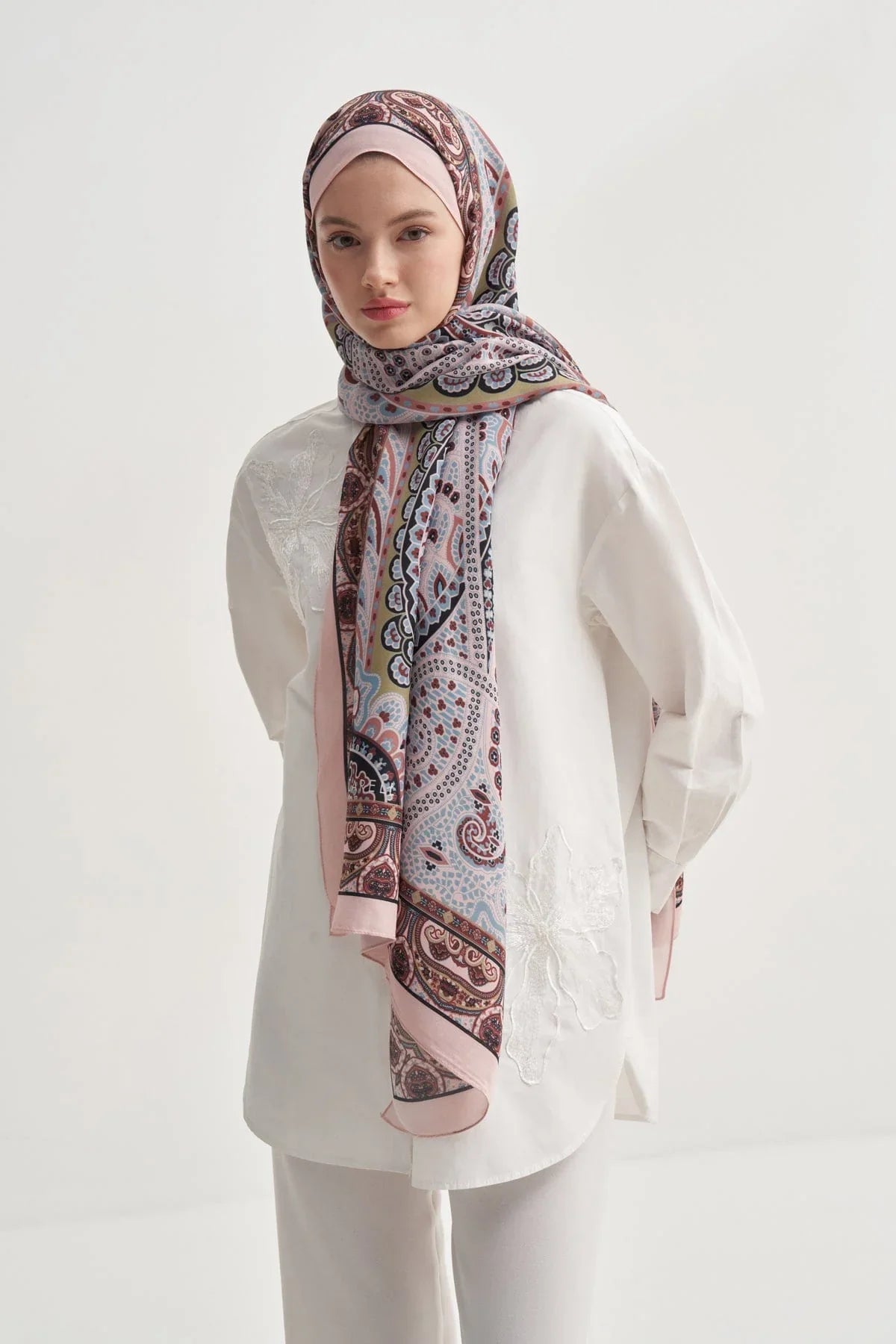 ETHNO BREEZE COLLECTION Nilla Cotton Scarf Collection blends lightweight comfort with elegant patterns-perfect for both daily wear and special moments. Its soft, breathable texture makes it suitable for all seasons. Fabric: 70% Viscose, 30% Cotton Size: 70 x 190 cm Care: Dry clean only Ironing: Use a dry iron on low heat Timeless and versatile, it's a must-have in every wardrobe.