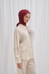 Organic Cotton Crinkle Scarf Soft and breathable, this organic crinkle scarf offers natural cotton comfort with a textured, wrinkle-free look. Lightweight and fully opaque, it’s perfect for all seasons. Size: 75 x 180 cm Care: Dry clean recommended. Hand wash gently in lukewarm water with mild detergent. Lay flat to dry. No ironing needed; use low heat without steam if necessary.