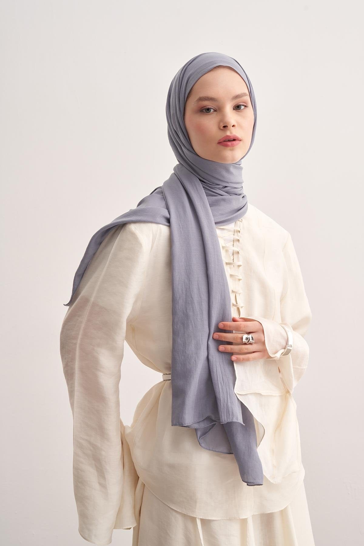 Organic Cotton Crinkle Scarf Silver Gray