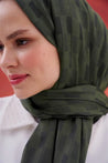 Pinstripe Jacquard Italian Silk Scarf Army Green