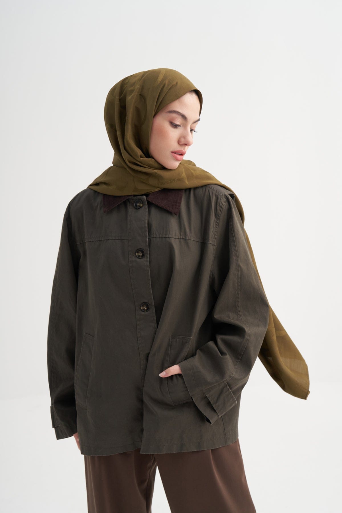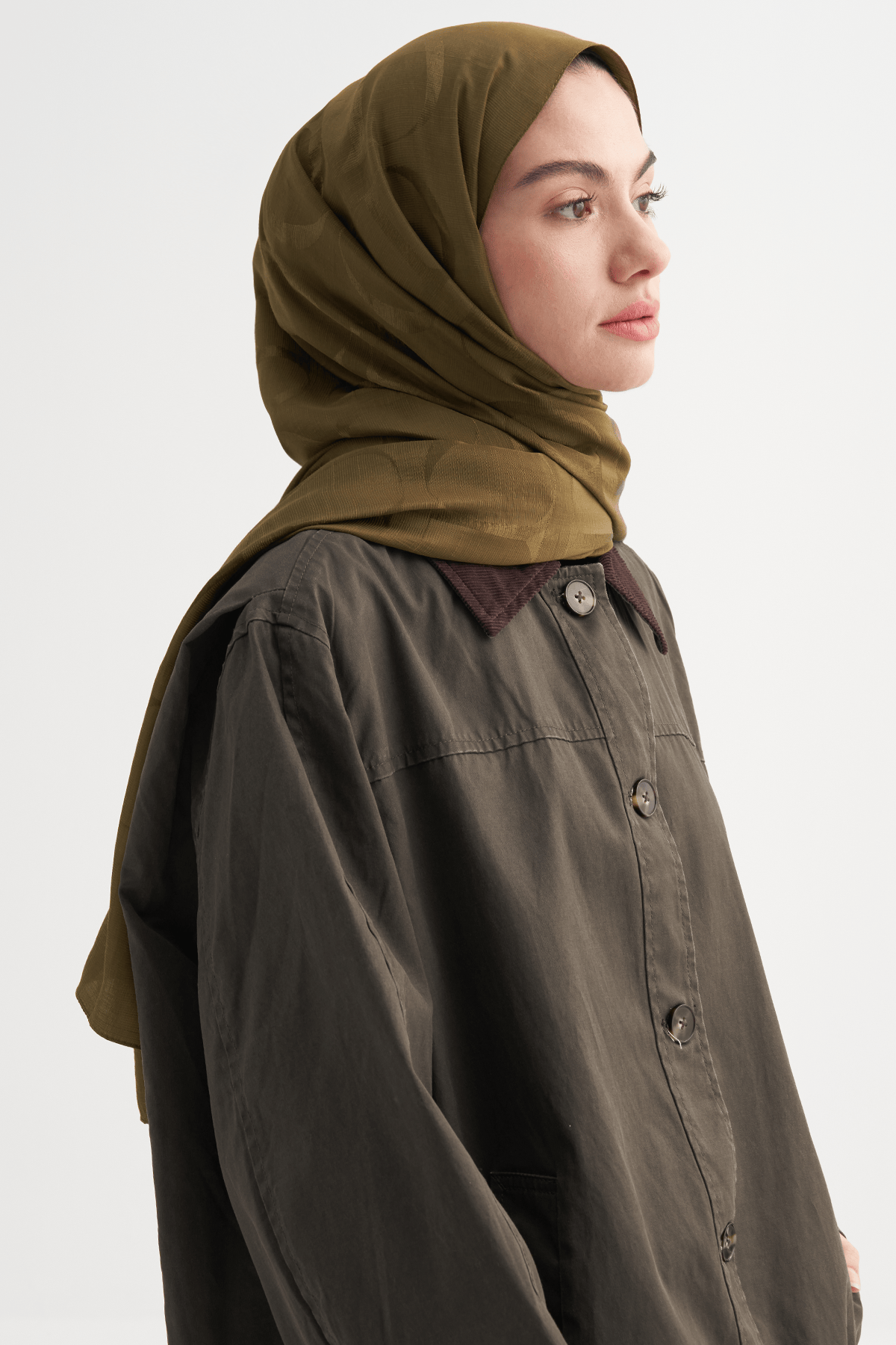 Monogram Pattern Rina Viscose Scarf Olive Green