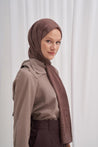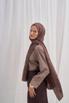 Script Pattern Jacquard Italian Silk Scarf Soft Brown