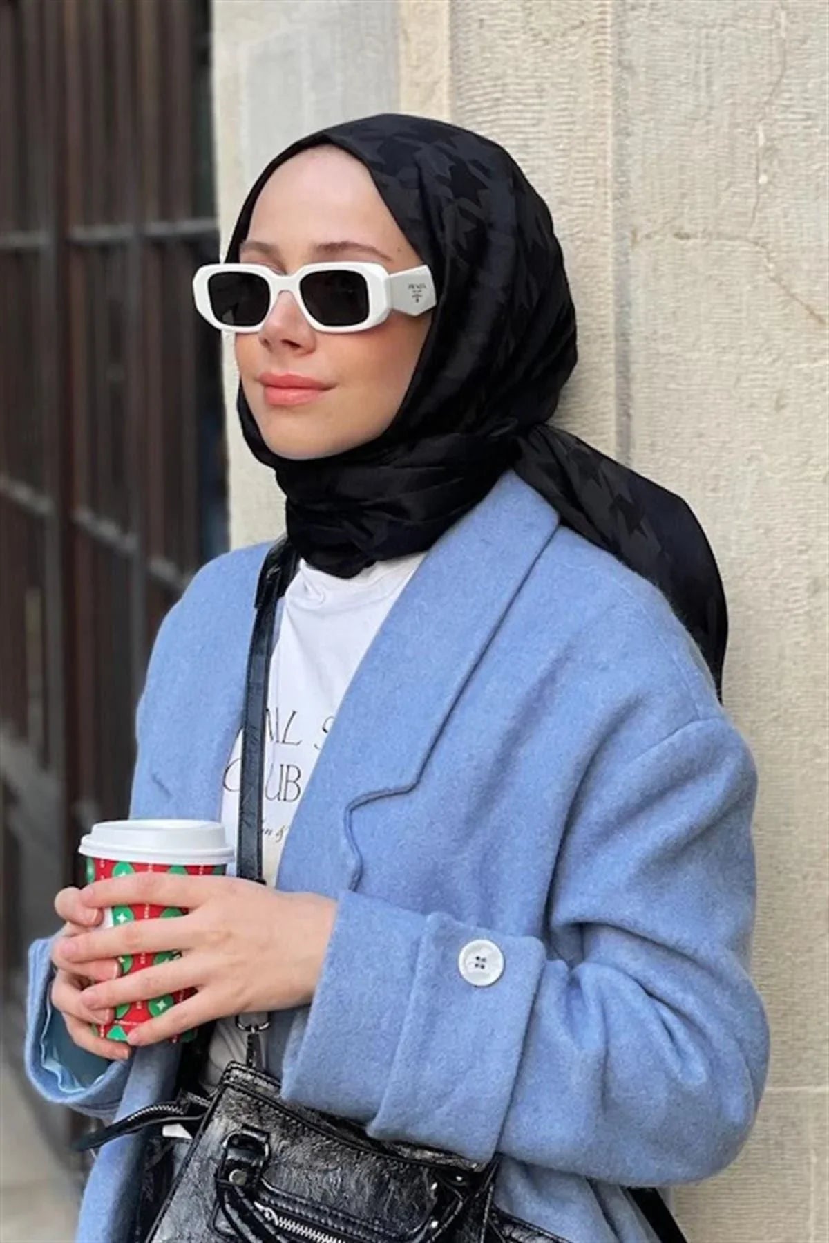 Feyza Hakyemez’s Choice: Houndstooth Jacquard Italian Silk Scarf Black