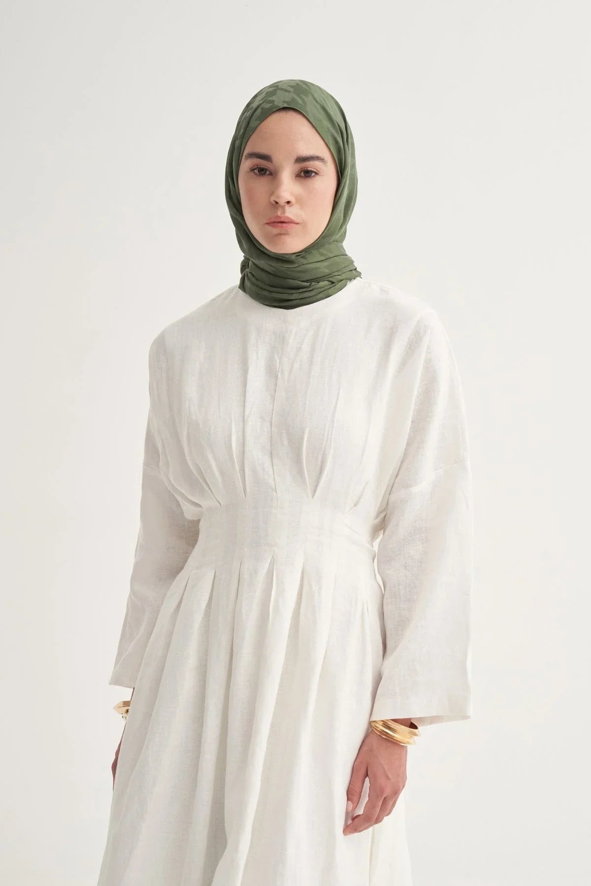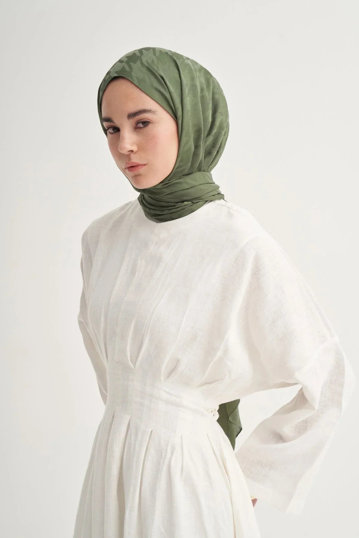 Houndstooth Jacquard Italian Silk Scarf Evergreen