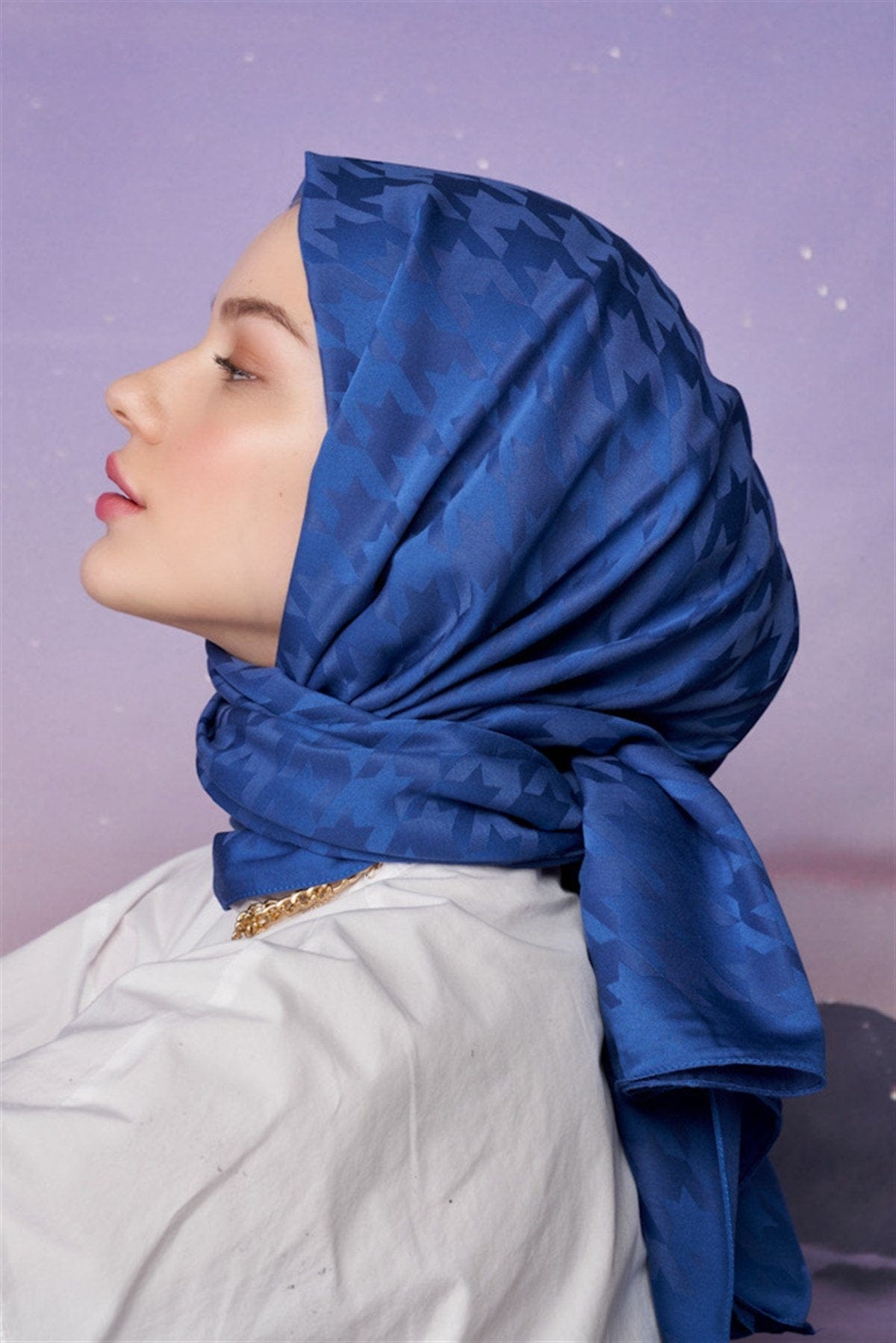 Houndstooth Jacquard Italian Silk Scarf Indigo