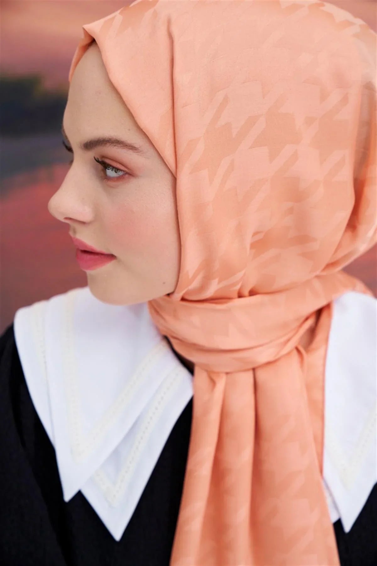 Houndstooth Jacquard Italian Silk Scarf Salmon