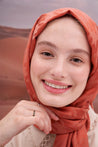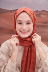 Jacquard Scarf Jacquard scarves feature self-woven patterns and a structured, elegant drape. Their firm texture is their most defining quality. Fully opaque and suitable for all seasons. Size: 75 x 195 cm Care Instructions: Dry clean recommended. If hand washing, use lukewarm water with mild detergent without rubbing. Lay flat to dry. Iron on lowest heat without steam if needed.