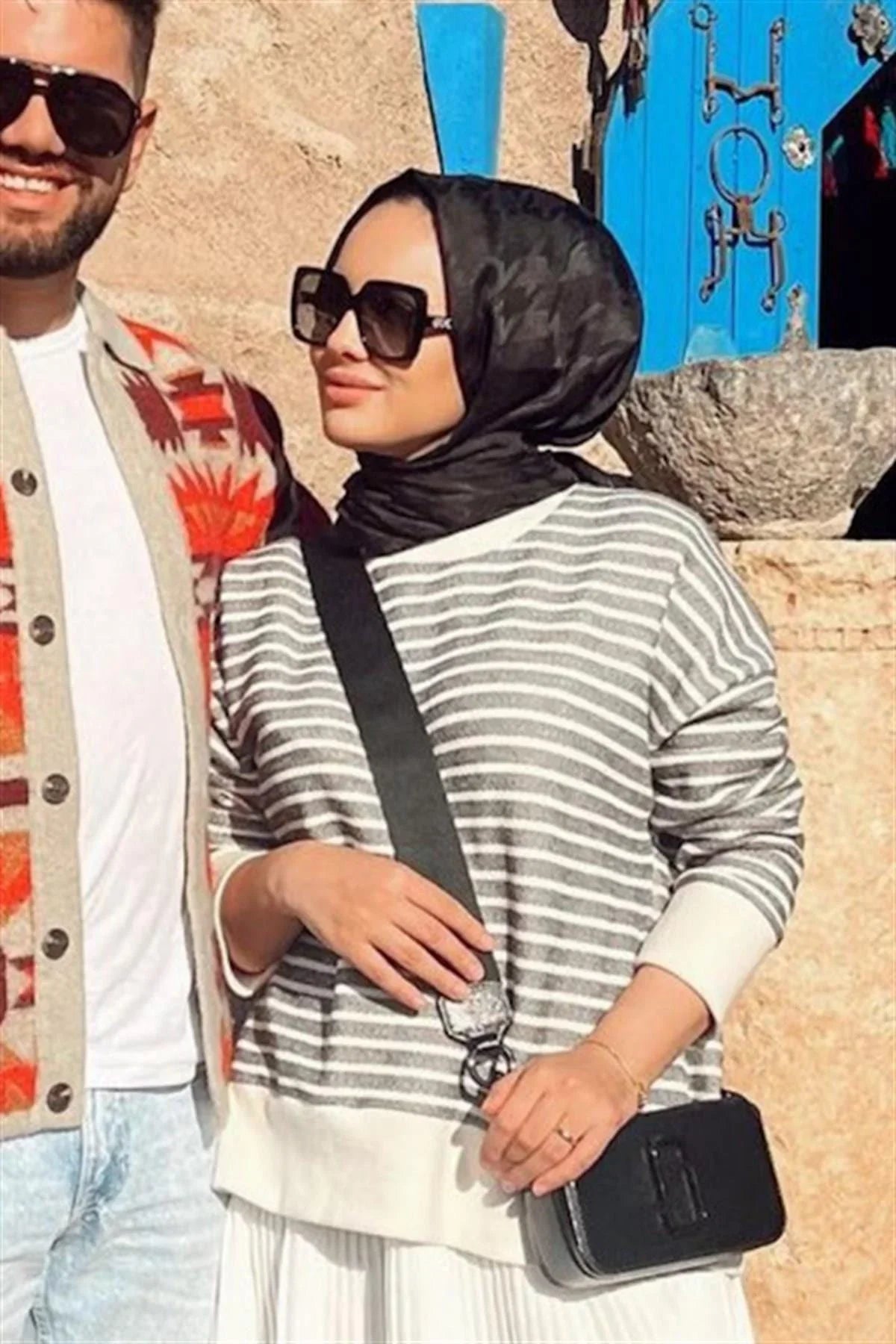 Merve’s Choice: Houndstooth Jacquard Italian Silk Scarf Black