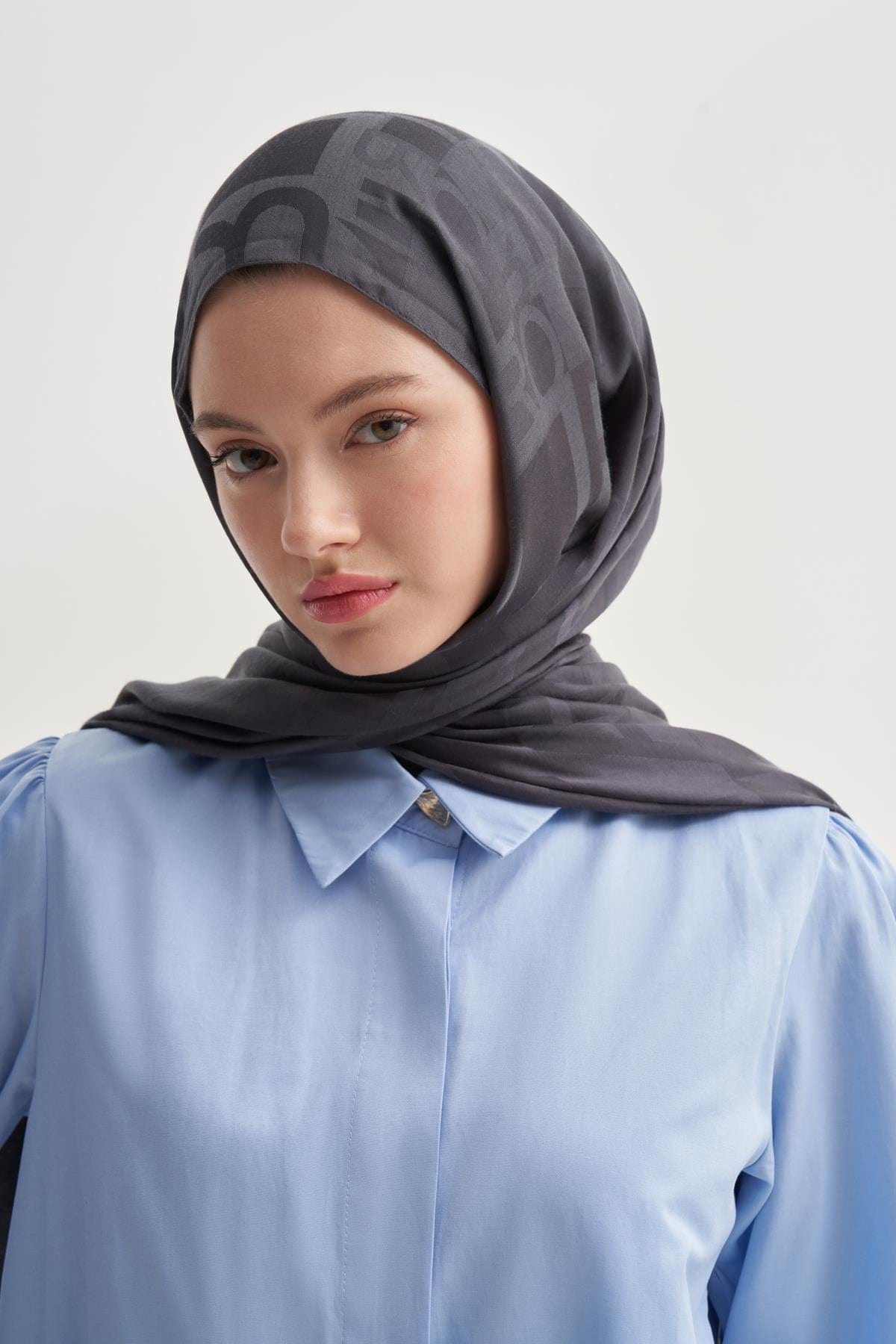 Script Pattern Jacquard Italian Silk Scarf Anthracite