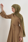 Jacquard Scarf Jacquard scarves feature self-woven patterns and a structured, elegant drape. Their firm texture is their most defining quality. Fully opaque and suitable for all seasons. Size: 75 x 195 cm Care Instructions: Dry clean recommended. If hand washing, use lukewarm water with mild detergent without rubbing. Lay flat to dry. Iron on lowest heat without steam if needed.