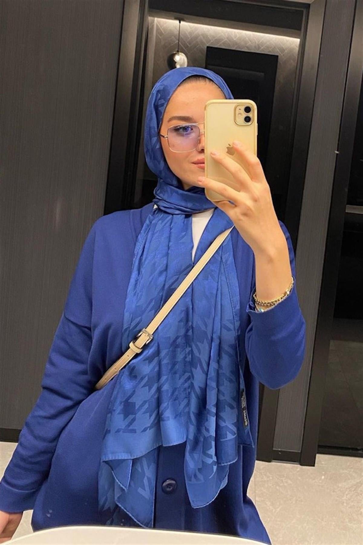 Eda's Choice: Houndstooth Jacquard Italian Silk Scarf Indigo